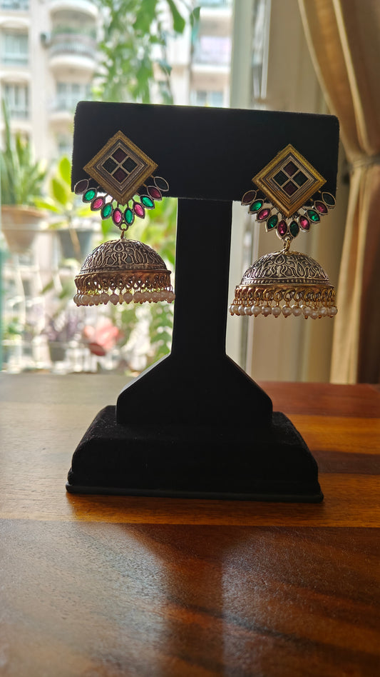 Sold outBhumi dual tone jhumkas with stones