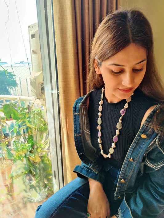 Amod necklace with labradorite,rose quartz, aventurine, amethyst and baraque pearls