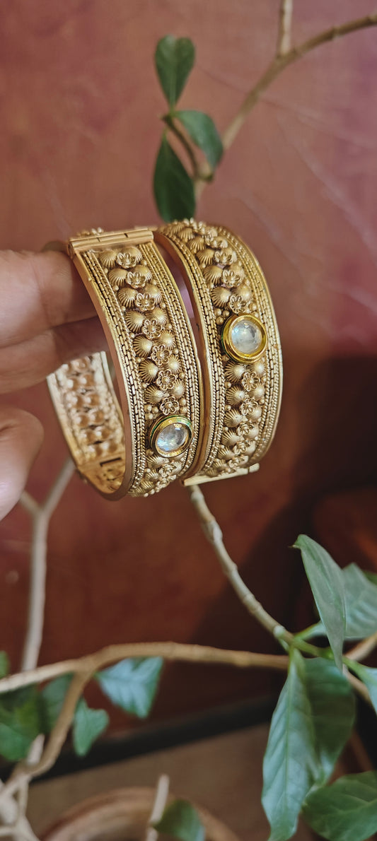Antique gold finish bangle(kara) with peach stones(1pc)
