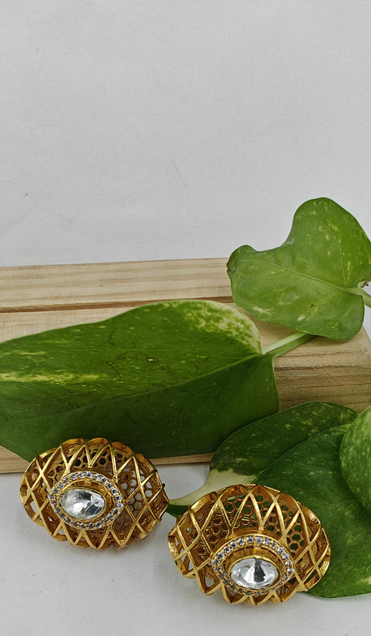 Web of gold kundan studs