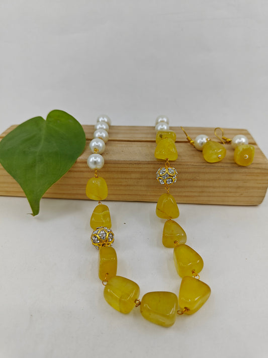 Yellow onyx beads set with pearls