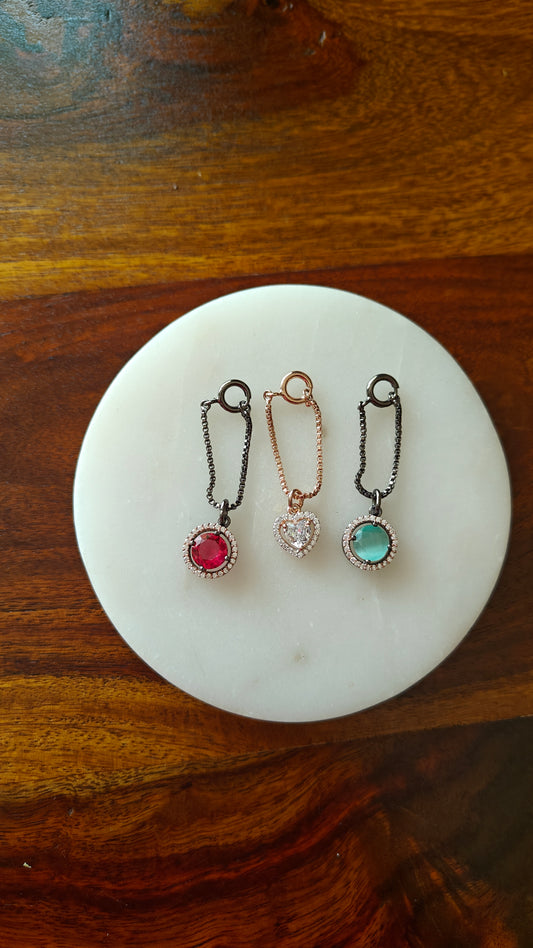 Zigzag earrings with sapphire/ emerald green stone hangings
