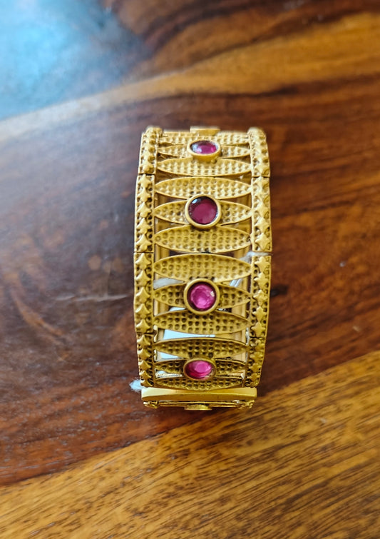 Gold karas(bangle)with red stones CZ and pearls all around(2pc)