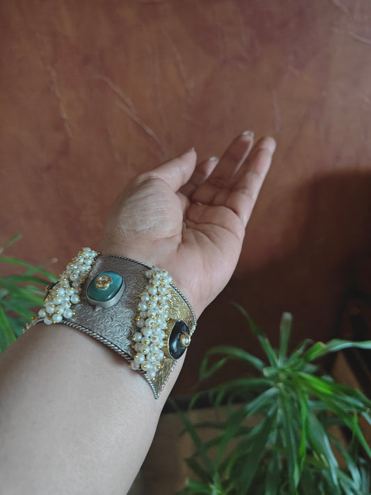 Dual tone kara(Bangle)with pearls and stone
