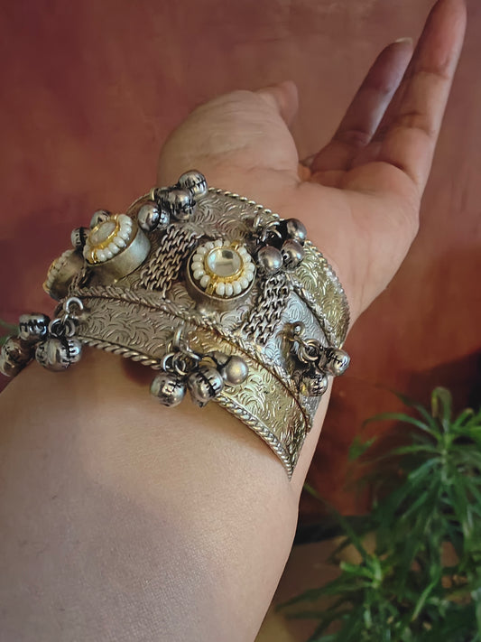 Dual tone kara( bangle) with pearl,kundan and ghungroos