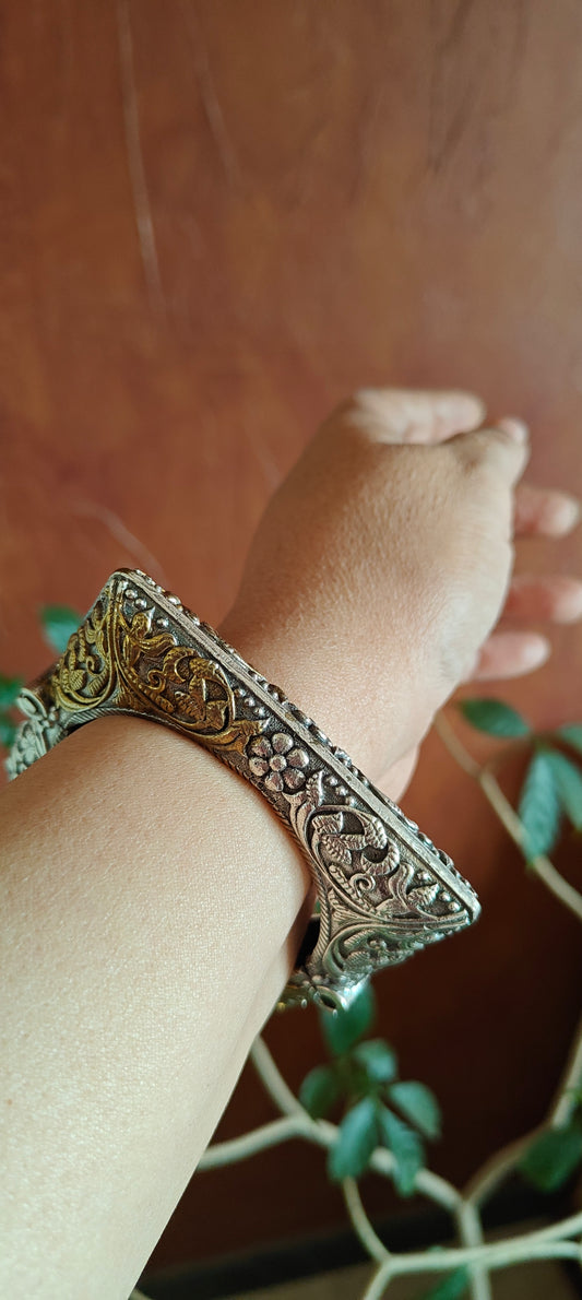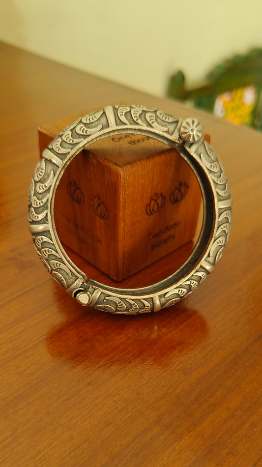 Bhavya silver(92.5) karas(bangles)with jali work and ball design(2 pc)
