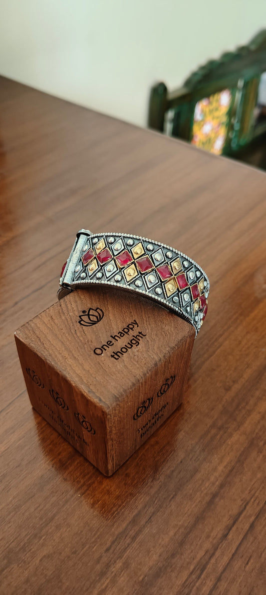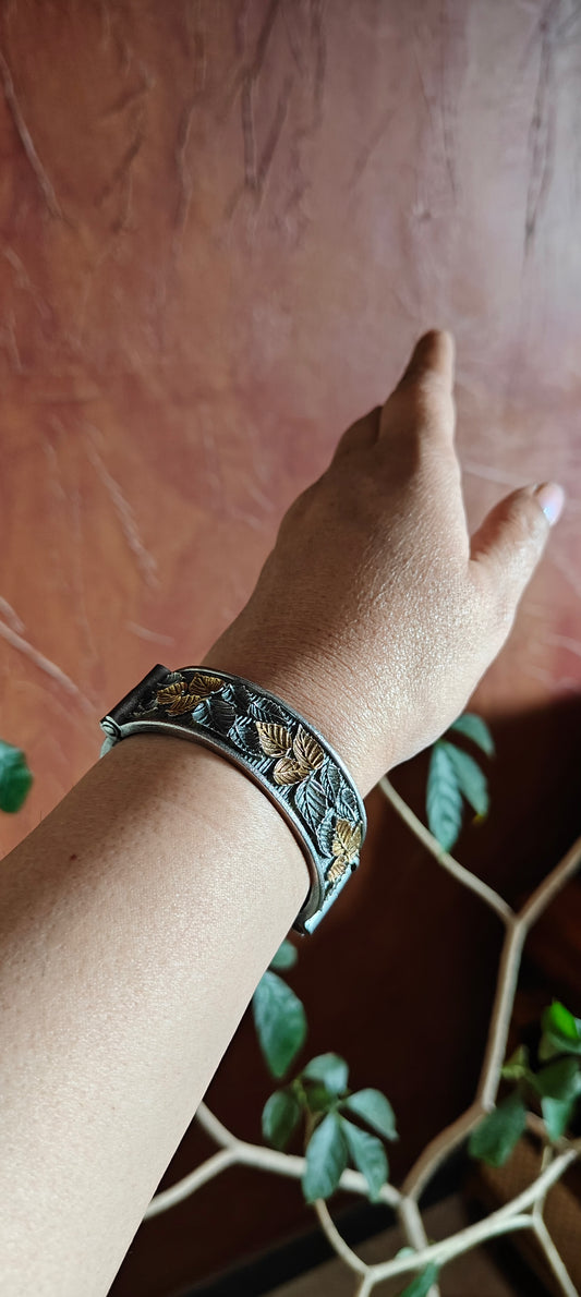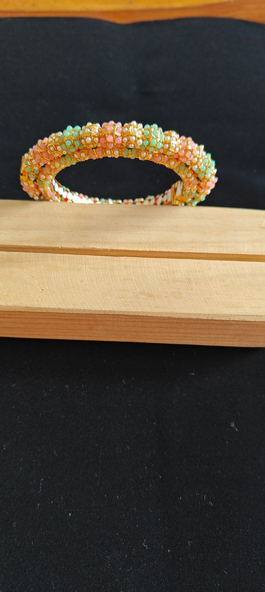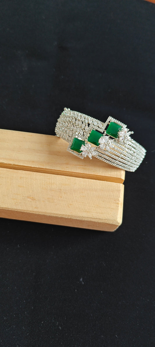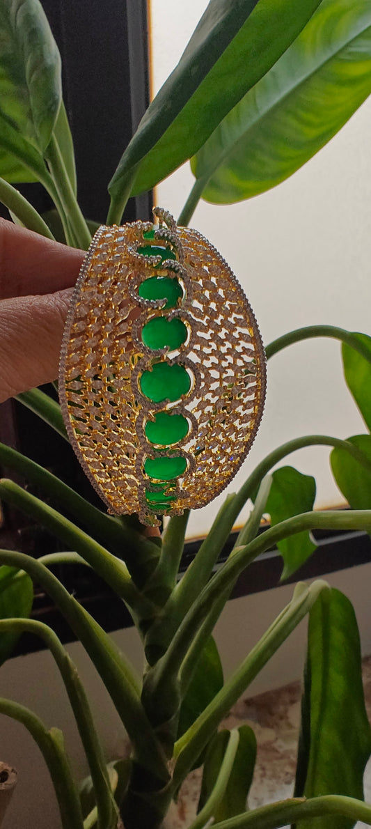 Emerald stone golden jali kara( bangle) with emerald colour stone