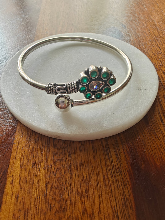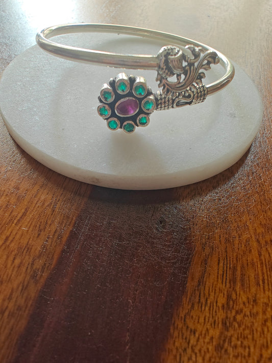 Stuti silver kara(bracelet) with flower and peacock(1pc)
