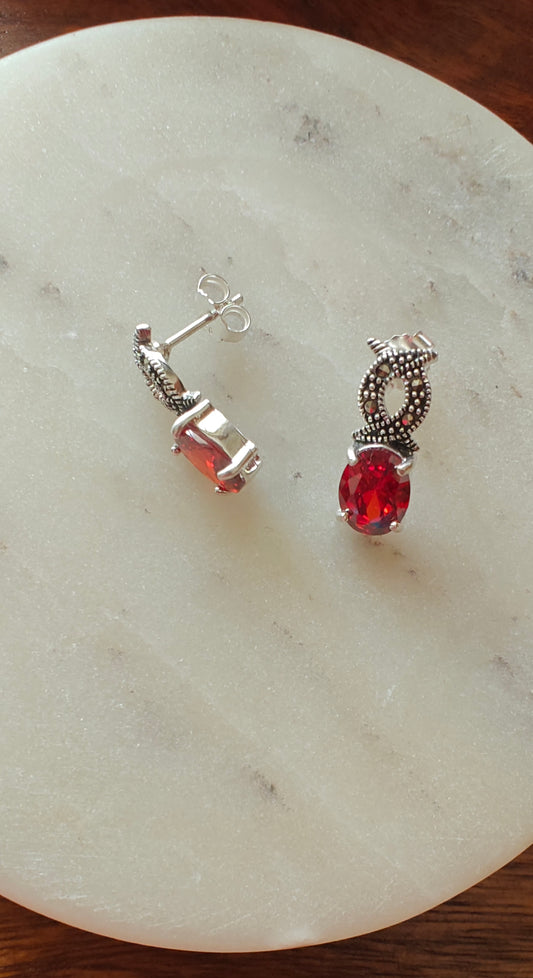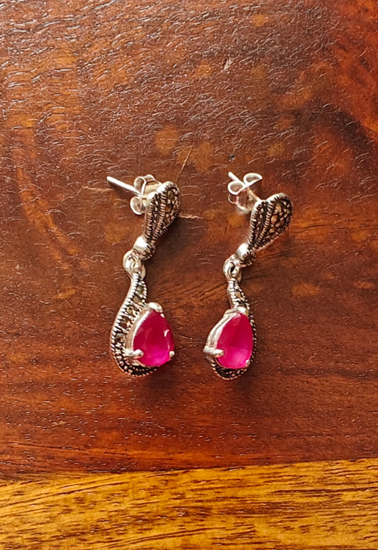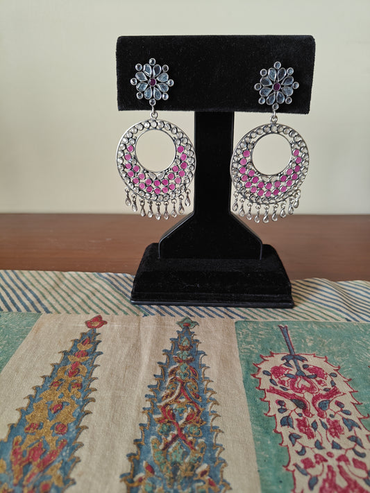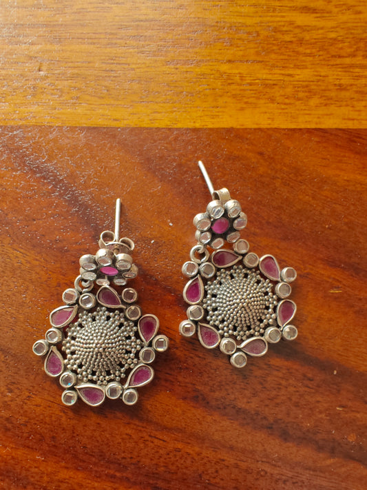 Devya silver Chand bali's(earrings) in ruby pink stone