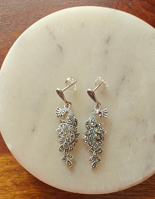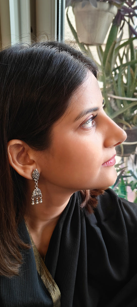Daali silver dangler earrings with stone drop (available in turquoise, emerald green and sapphire blue options)
