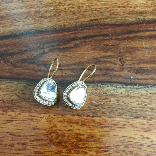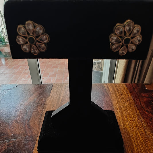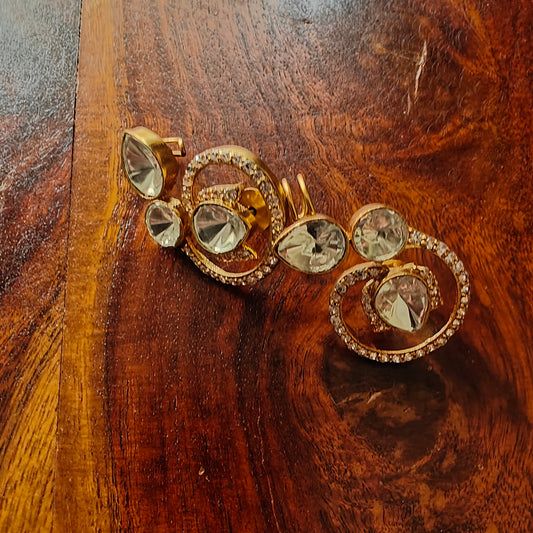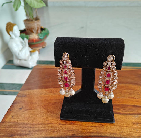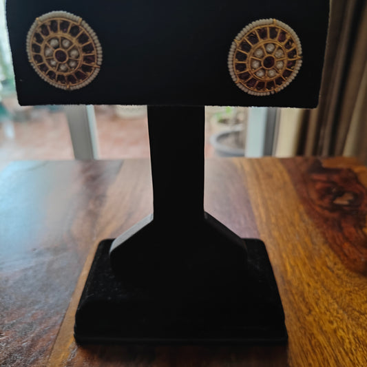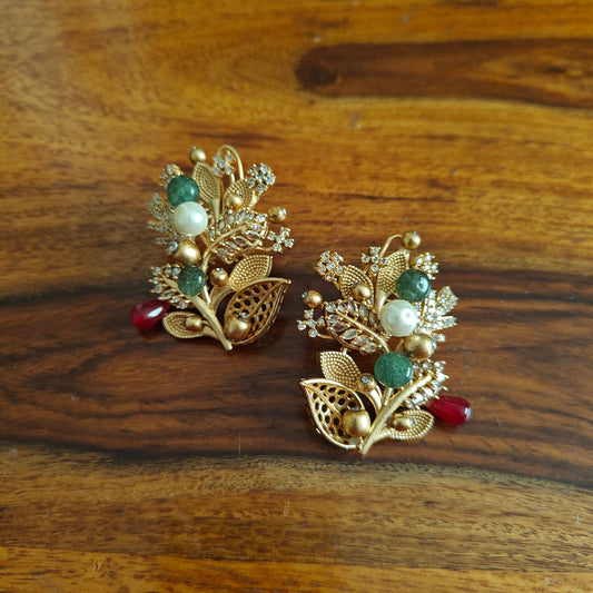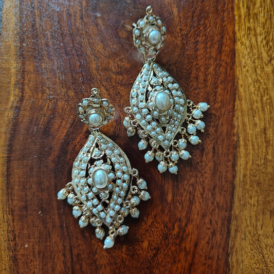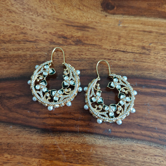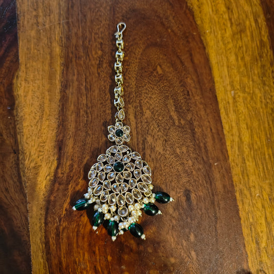Big stone jhumkis(earrings),pearl chains,mang tikka