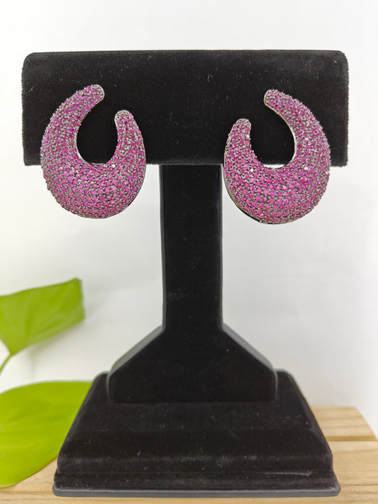 Triangular earrings with sapphire blue/Ruby pink nano stones with CZ highlights