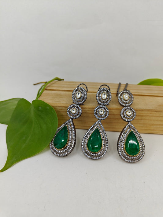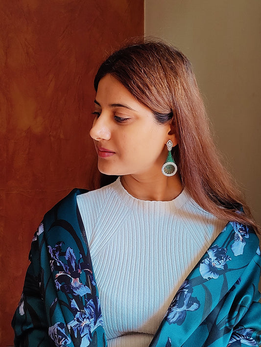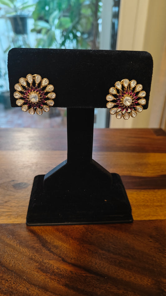 Fiza flower earrings with kundan and Ruby/emerald stone