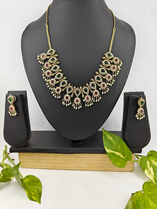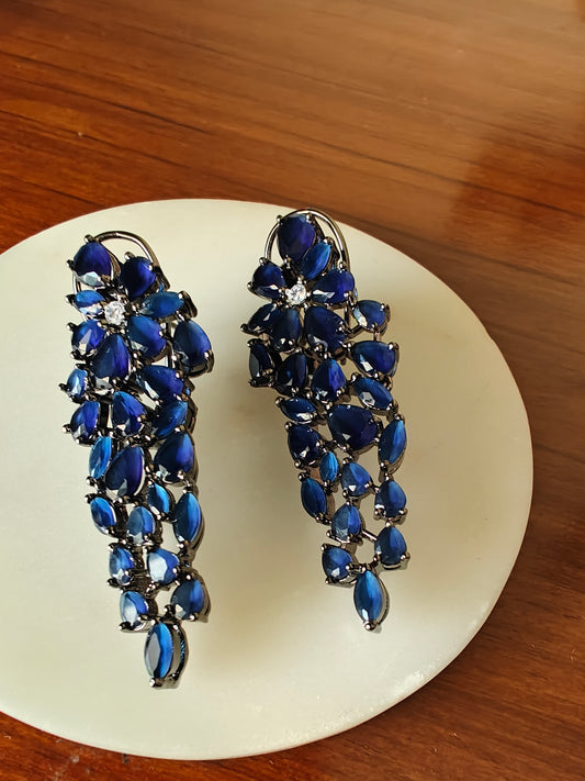 Pushpanjali earrings in blue sapphire,ruby pink, emerald green