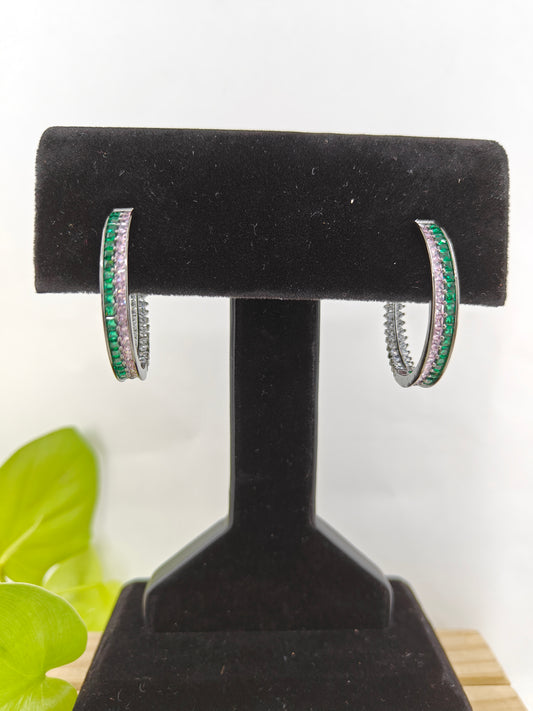 Hoops with aqua blue/green stone on top. Suds can be worn separately as well.
