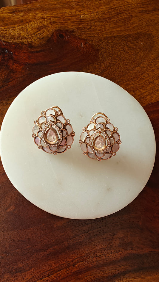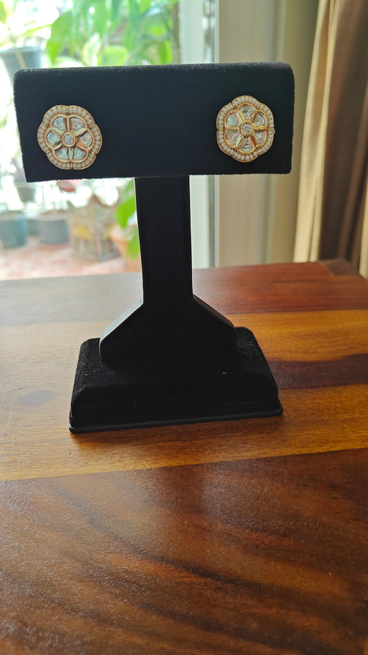 Oval shaped studs (earrings) with Firoza/ mother of pearl petals