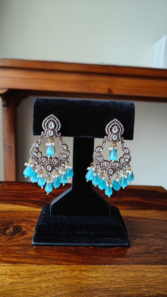Pushpanjali earrings in blue sapphire,ruby pink, emerald green