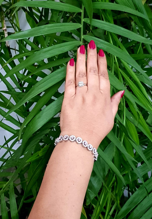 Platinum finish bracelet, oval shaped pale pink stone with CZ setting around
