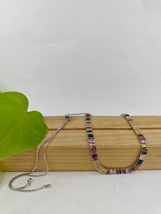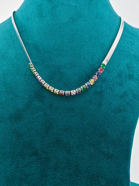 Necklace in platinum/gold/rose gold finish with round multicolour/ cubic zirconia stones