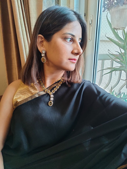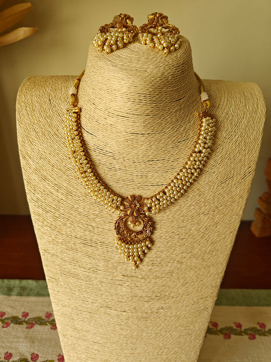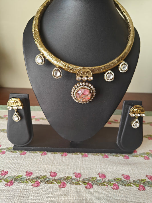 Nirupa choker set with stone and moissanite on poth pearl strings