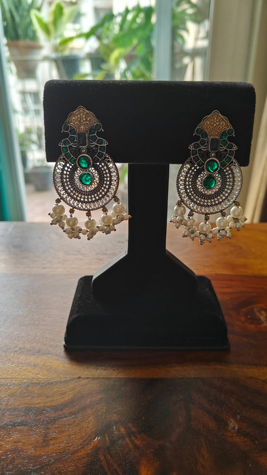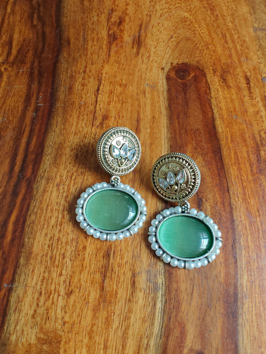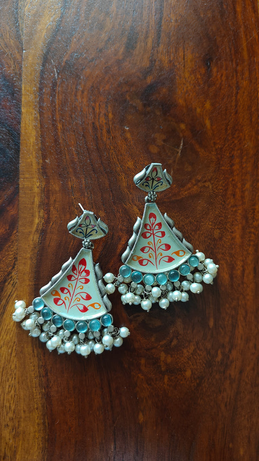 Ring with kundan and meenakari work in centre,pearl beads surrounding it