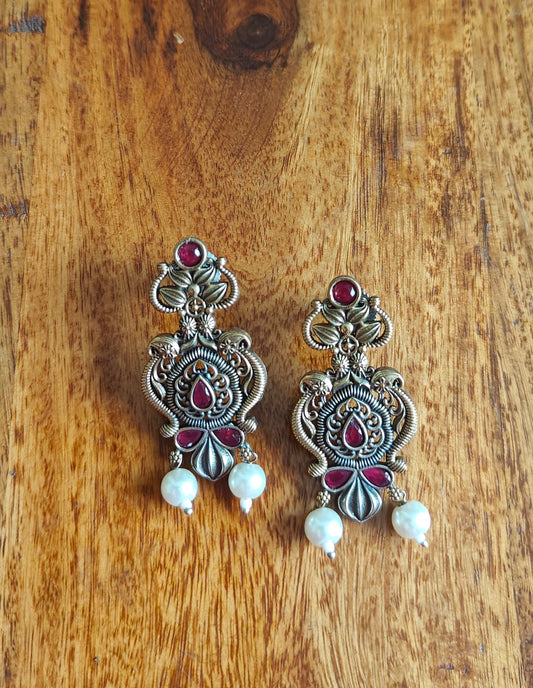 Sold outDual tone intricate design earrings