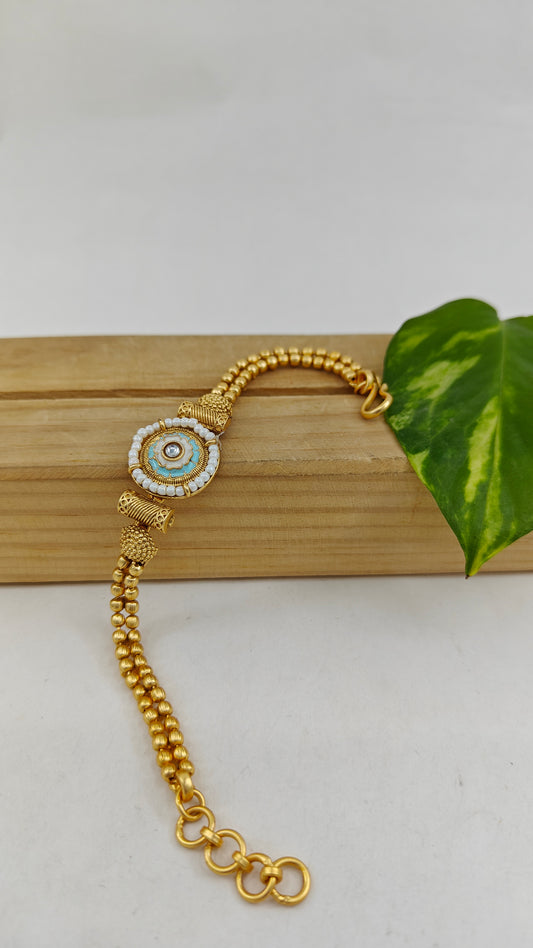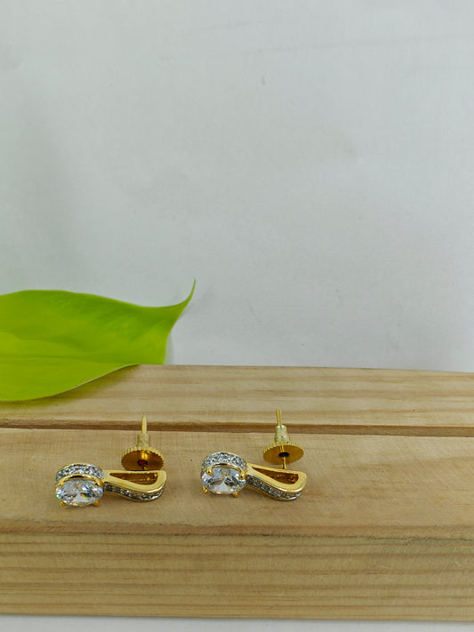 Round CZ fixed to half C shaped design in gold/antique platinum/platinum finish.