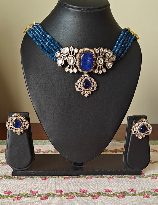 Lochan chocker with blue stones and moissanite