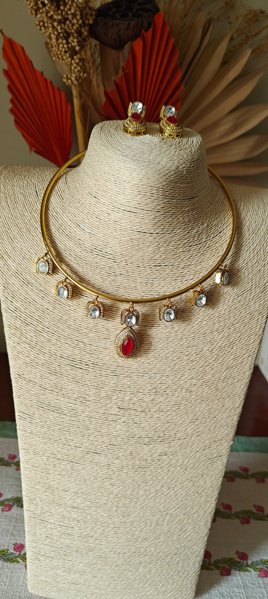 Chaitali pipe hasli(Necklace) set with moissanite and stone.