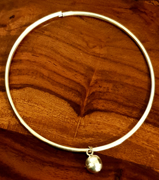 Sterling silver circular necklace (hasli) with silver ball pendant