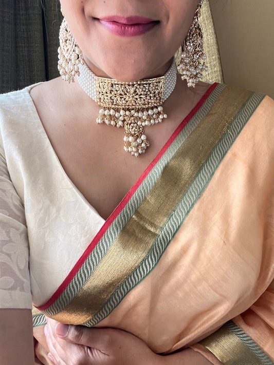 'Roseate' multi-strand necklace set in delicate pink beads and kundan, with matching earrings