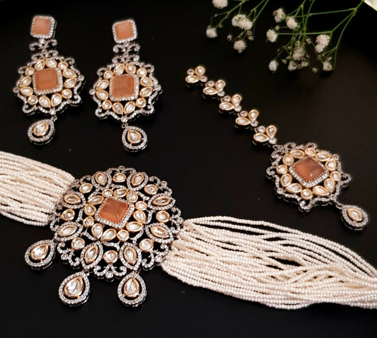 Kundan choker set with matching maangtika and earrings