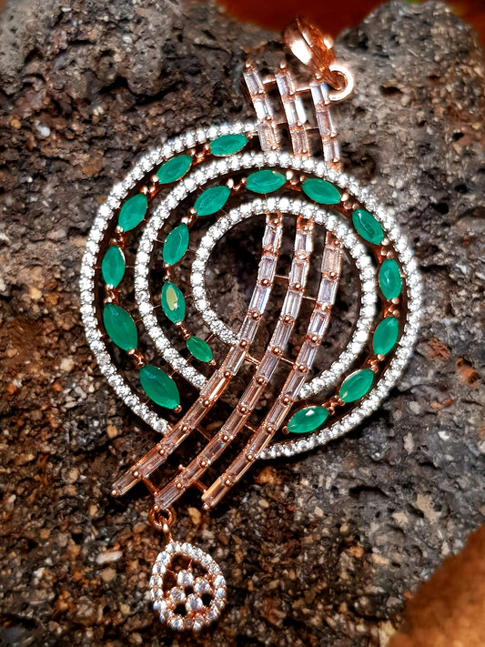 Cosmic spiral pendant set studded with emerald green and champagne stones