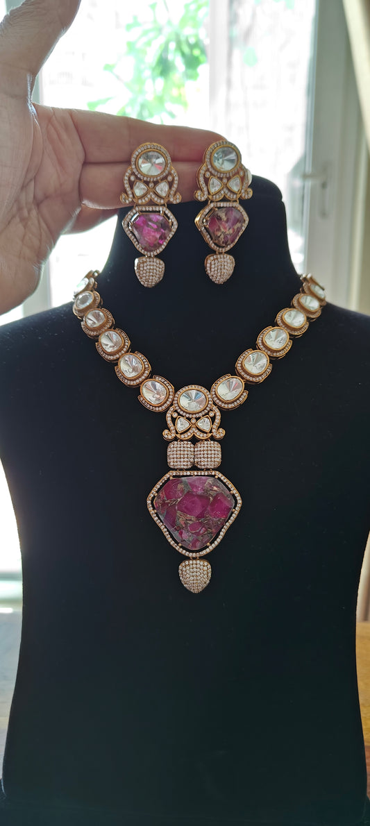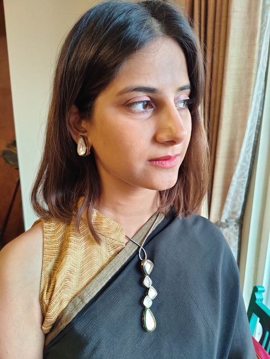 Chaitali pipe hasli(Necklace) set with moissanite and stone.