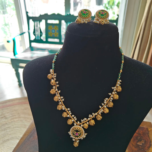 Ratnali set with green stone and gold work