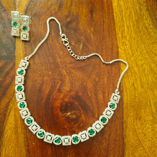 Ramya set with emerald green stone round setting