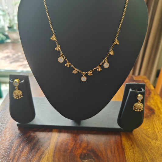 Set with stones on a stiff chain