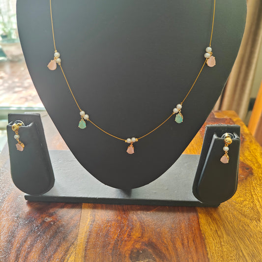 Rashmika set with suspended stone pieces on chain