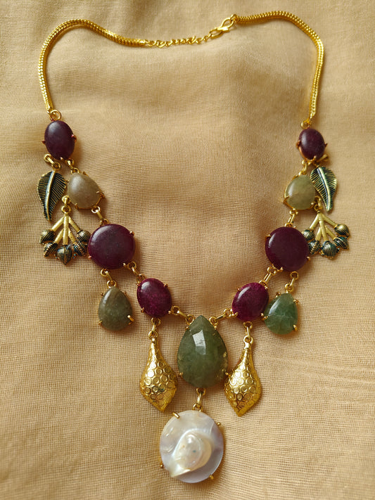 Antique choker set with kundan,CZ stone and green/mint green/ blue stone,set on poth pearls