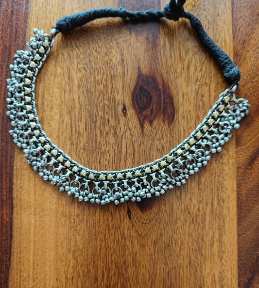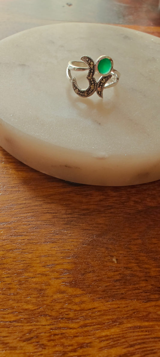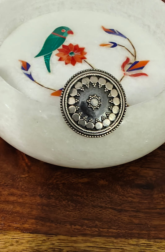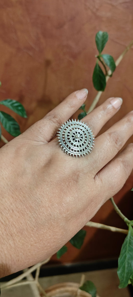 Sterling silver ring with ruby red and transparent stone in antique finish