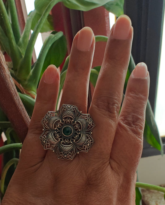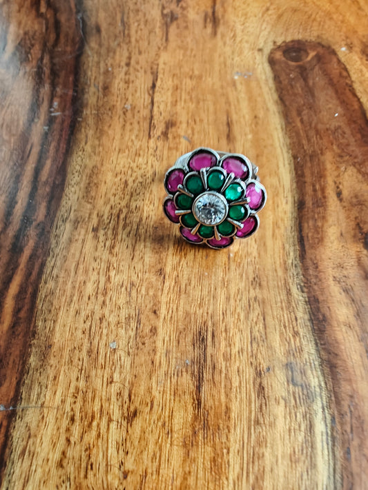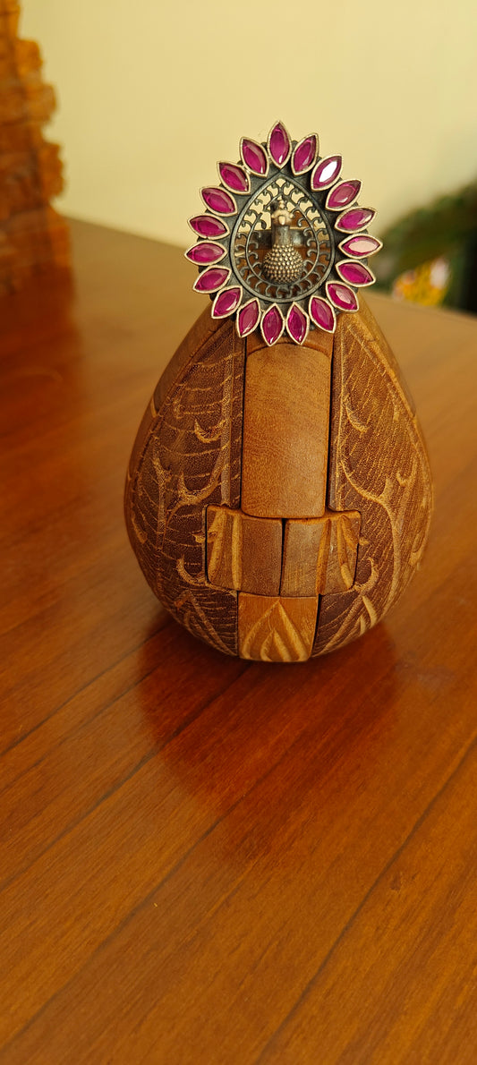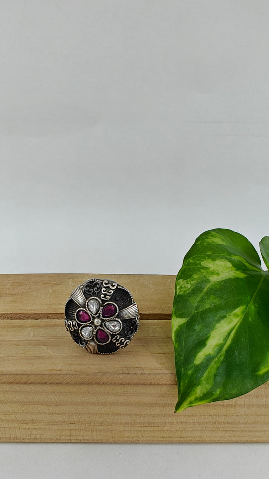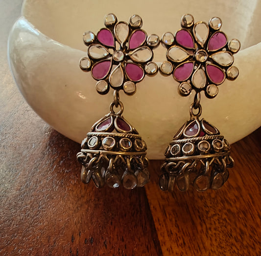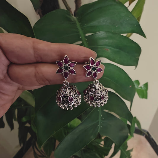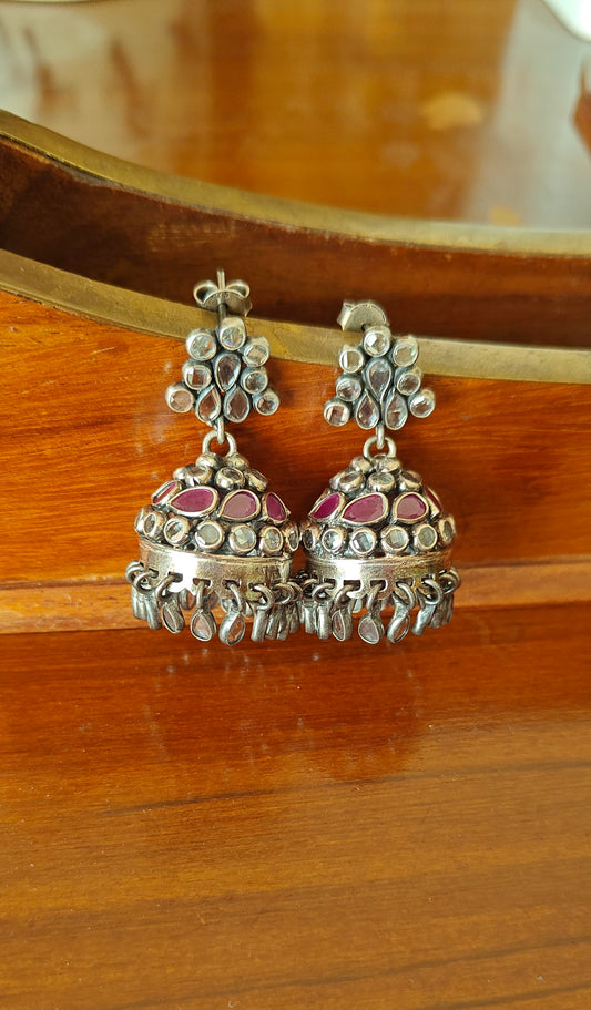 Silver(92.5) Jhumkis with ruby red and clear stone