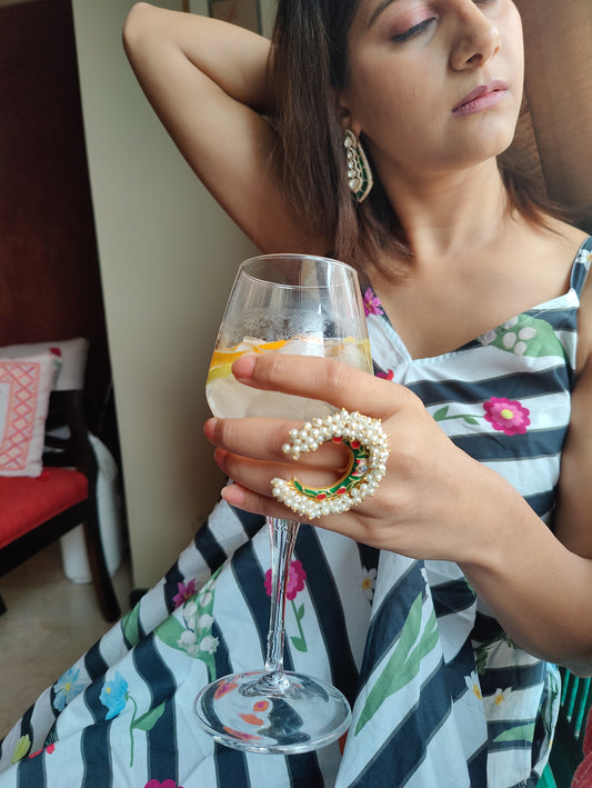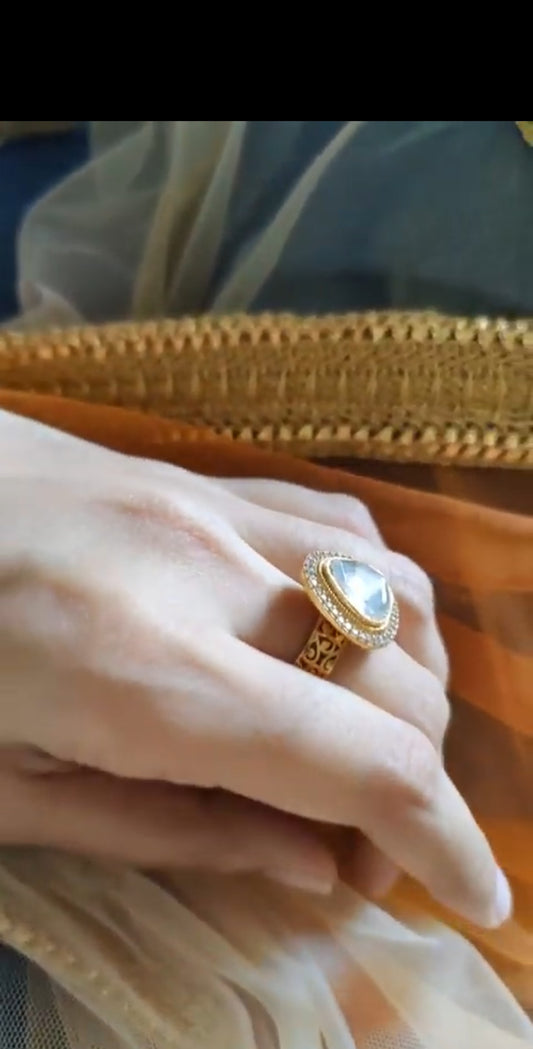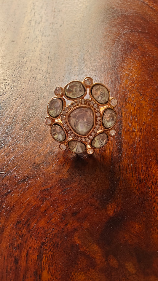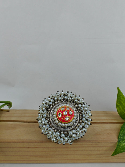 Ring with kundan and meenakari work in centre,pearl beads surrounding it