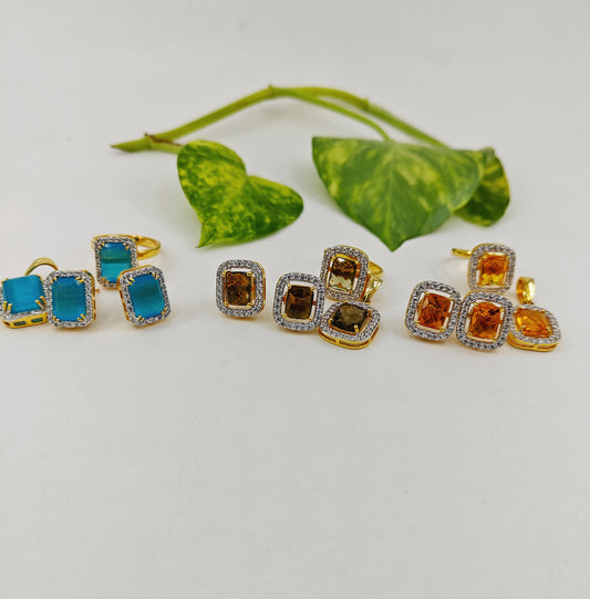 Pendant Set with ring in gold finish with stone surrounded by CZ