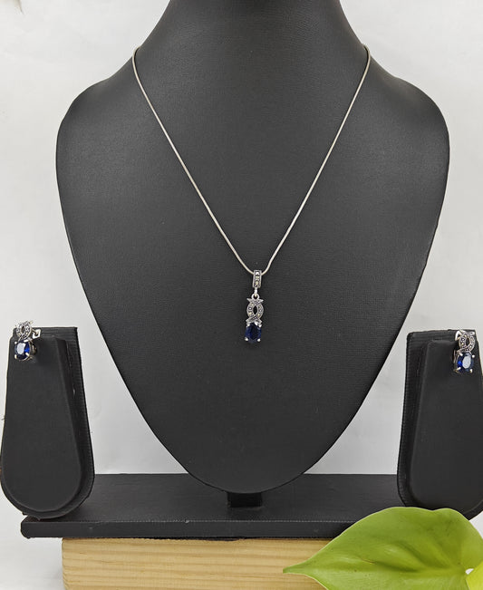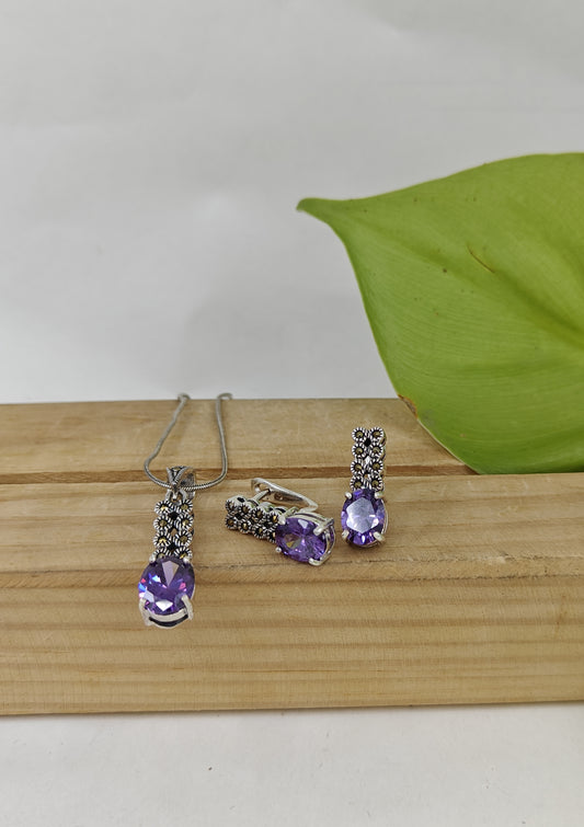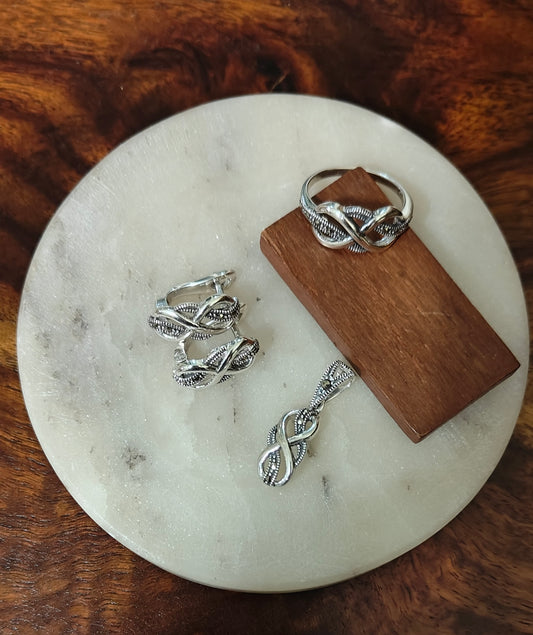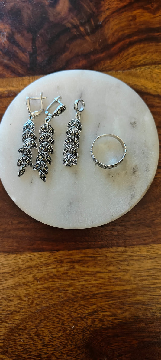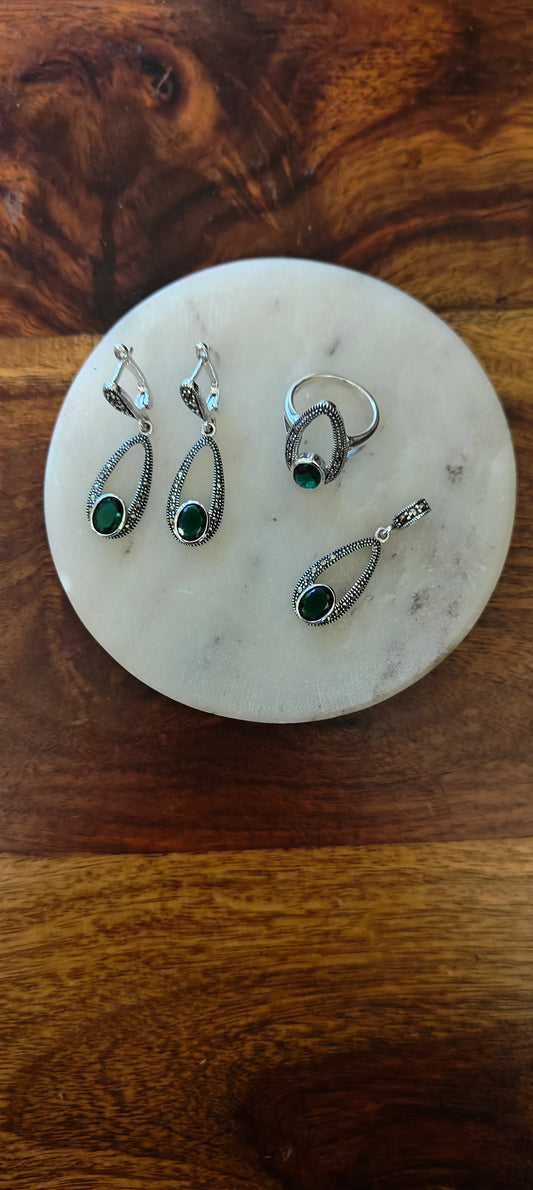 Chaitali silver marcasite set with emerald green stone(pendant,earrings,ring)