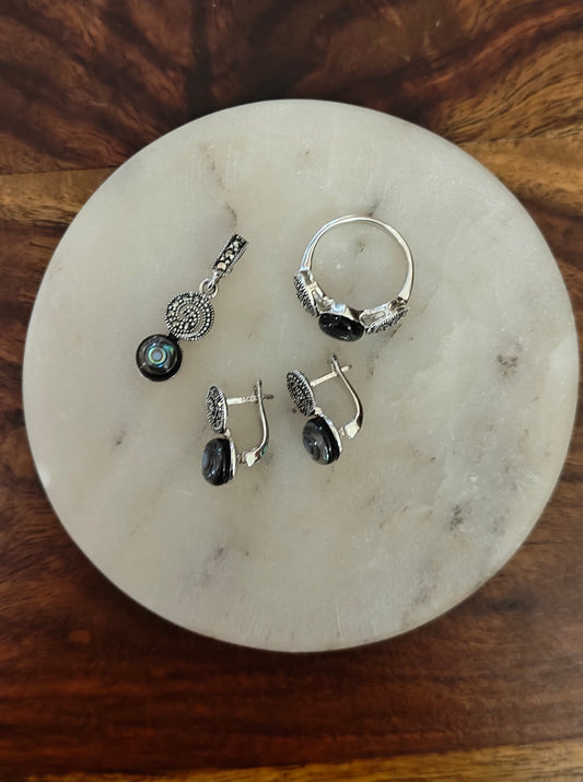 Ehimaya silver set with labradorite (includes earrings, pendant and ring)
