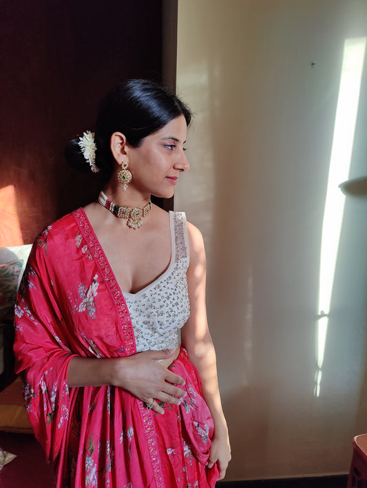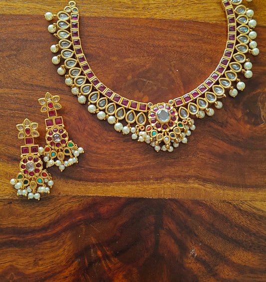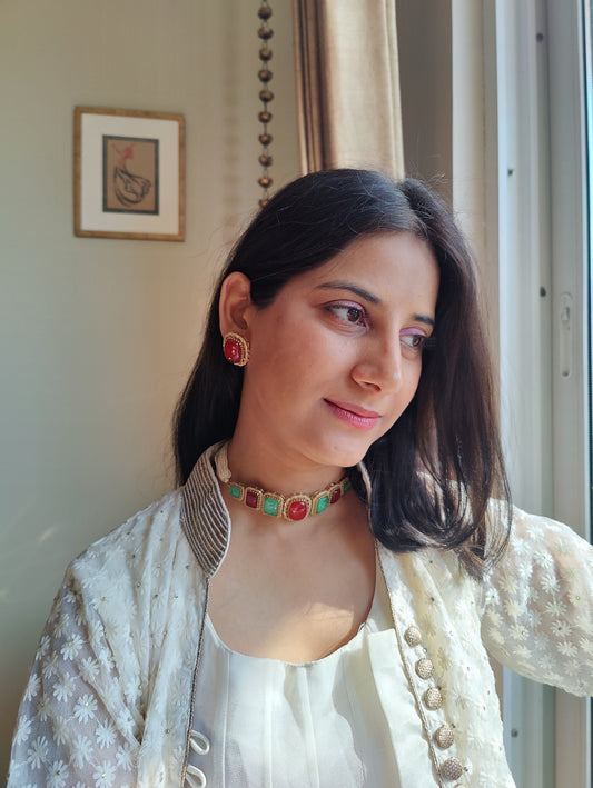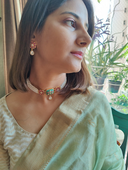 Namya choker with coloured stones on poth pearl strings