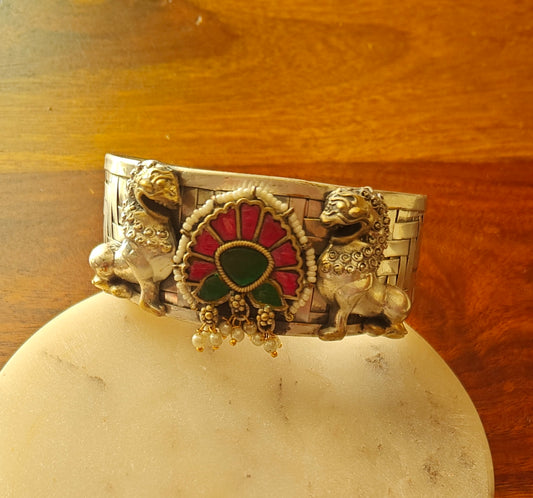 Divena kara( bangle)in dual tone with kemp stones