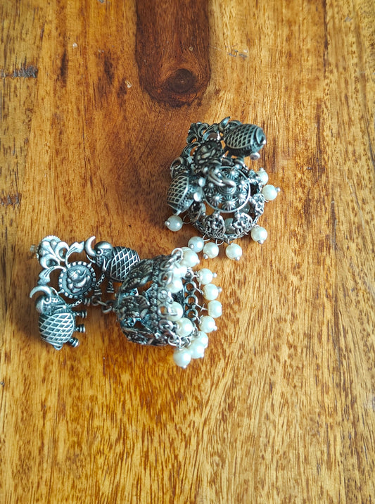 Jhumkis on stud with elephants and ganesh