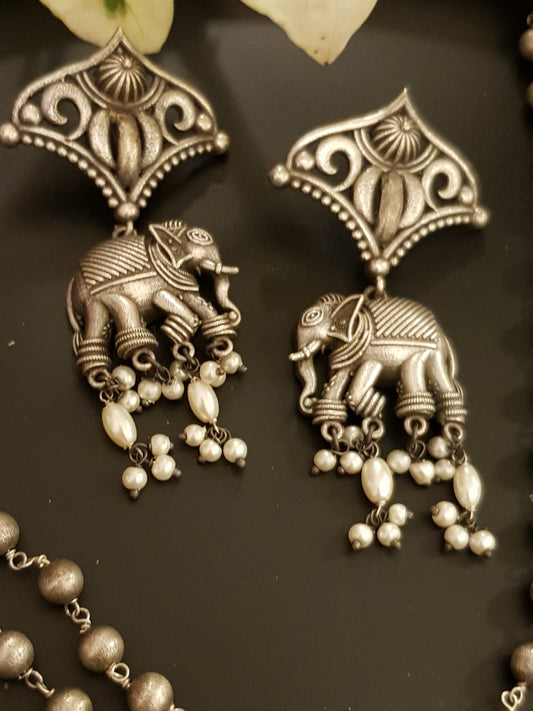 Antique elephant duet necklace and earrings set