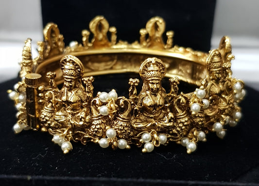 Temple jewelry gold finish lakshmi bangle (kangan-2) with pearl clusters